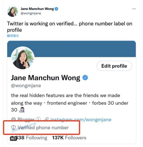 當地時(shí)間 8 月 19 日,科技媒體 The Verge 報道稱(chēng),工程師 Jane Manchun Wong 發(fā)現推特在用戶(hù)資料欄中添加了“電話(huà)號碼認證(Verified phone number)”標簽。