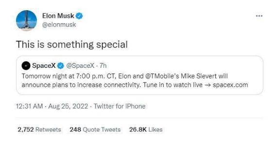 SpaceX和T-Mobile聯(lián)合舉辦活動(dòng) 宣布所謂的“增強連接”計劃 09:43:37
