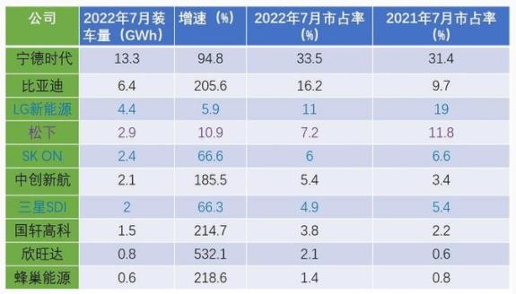 全球動(dòng)力電池行業(yè) 7 月排名出爐,寧德時(shí)代(300750.SZ)穩居第一,比亞迪(002594.SZ)單月數據創(chuàng )新高。