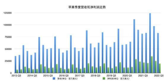 目前可獲取的蘋(píng)果最新財報數據是 2022 財年第三季度 (日歷年第二季度)。第三財季是蘋(píng)果的淡季,業(yè)績(jì)通常是一年中最差的或者只能說(shuō)差強人意。