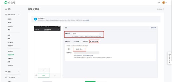 2.進(jìn)入到公眾號后臺在左側菜單找到自定義菜單,點(diǎn)擊進(jìn)入就可以看到右側設置自定義菜單的位置。