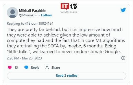 Parakhin 回答說(shuō),在他看來(lái),谷歌 Bard 與必應聊天相比“遠遠落后”。他還說(shuō),“考慮到他們所擁有的計算資源很少”,以及“在核心機器學(xué)習算法方面他們落后于最先進(jìn)水平大約 6 個(gè)月”,他們能夠取得這樣的成果“令人印象深刻”。我們是“小家伙”,我們學(xué)會(huì )了永遠不要低估谷歌。