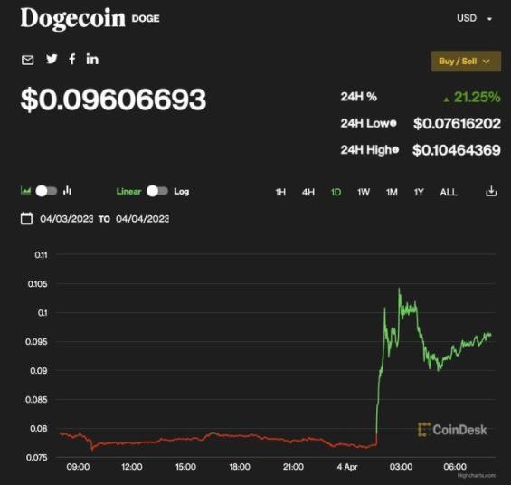 加密貨幣狗狗幣價(jià)格一度飆升超過(guò) 30%,現漲 21.25%。此前推特 CEO 埃隆·馬斯克將公司網(wǎng)站上標志性的“小藍鳥(niǎo)”換成了“柴犬”卡通形象。 ?。?a href="http://www.1788clc.com">碼上科技)