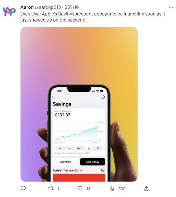 IT之家此前報告,蘋(píng)果將為 Apple Card 用戶(hù)推出高收益的 Savings Account 服務(wù),也就是相當于我們熟悉的“余額寶”功能。