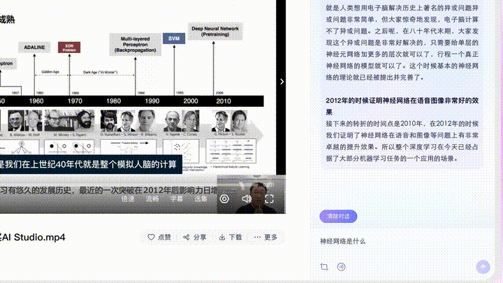 比如,打開(kāi)一個(gè)課程視頻,「云一朵」可以在多模態(tài)能力的加持下,為視頻添加字幕、將全部字幕導出文稿、提煉內容重點(diǎn)、甚至添加文稿標題。