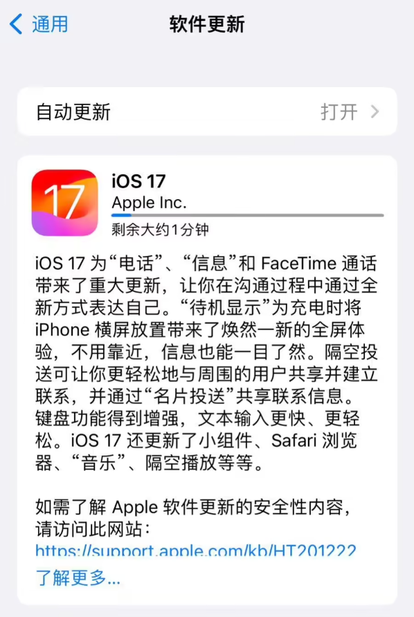 附上蘋(píng)果 iOS 17 簡(jiǎn)要更新日志內容如下: