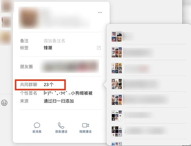 另外新版還可以查看「共同群聊」的數量,以及具體的共同群聊列表。