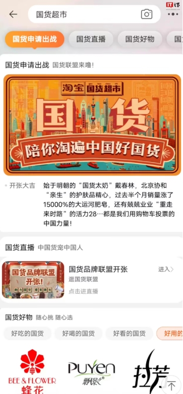 淘寶上線(xiàn)“國貨超市”,涵蓋華為、小米、vivo 等品牌