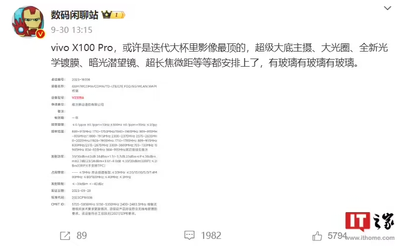 此前一款型號為“V2309A”的 vivo 新機通過(guò)了工信部無(wú)線(xiàn)電核準,預計為 vivo X100 Pro,博主 @WHYLAB 透露這款新機有望搭載衛星通訊功能。