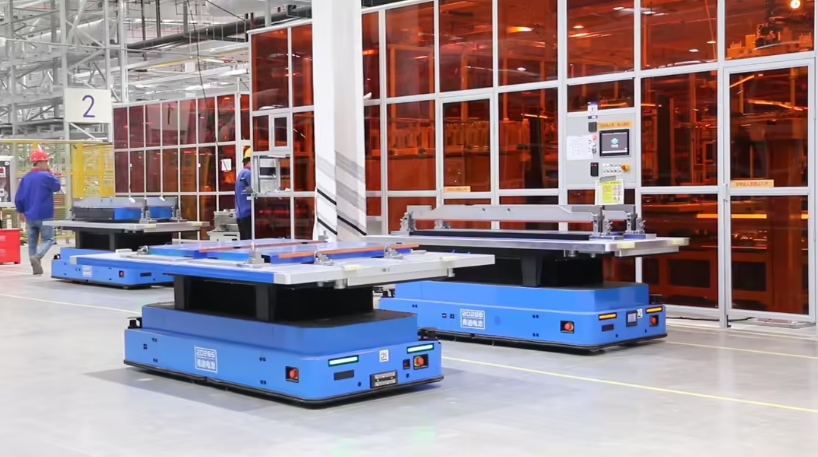此外,車(chē)間內配備了 100 多臺 AGV 小車(chē)(注:Automated Guided Vehicle,自動(dòng)導引運輸車(chē))用來(lái)代替傳統輸送輥道,可節省約 30% 人力,生產(chǎn)設備也為迭代升級后的 2.0 版本。