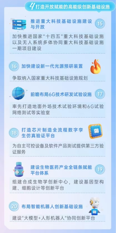 前瞻布局 6G 技術(shù)開(kāi)發(fā)試驗設施:構建智能超表面技術(shù)驗證實(shí)驗室、6G 試驗網(wǎng)絡(luò )測試實(shí)驗室、6G 射頻基礎測試實(shí)驗室和設備環(huán)境可靠性實(shí)驗室等,加速芯片、模組、終端等關(guān)鍵領(lǐng)域前沿技術(shù)突破。
