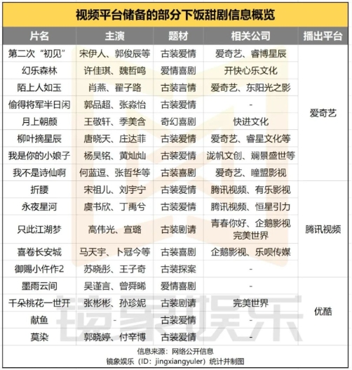 另一方面,此類(lèi)內容多為中腰部劇集,在平衡平臺內容布局結構上也是相當重要的板塊。且在市場(chǎng)受歡迎程度上,此類(lèi)內容的題材優(yōu)勢更利于藝人養成,此前,趙露思、丁禹兮、虞書(shū)欣、王鶴棣、田曦薇等藝人,都借助相關(guān)劇集實(shí)現聲量大幅增長(cháng)。