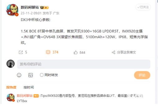 近日,數碼博主“數碼閑聊站”曝光了vivo X100標準版的詳細配置,其將搭載聯(lián)發(fā)科最新旗艦處理芯片天璣9300,采用16GB LPDDR5T運存。拍照方面,搭載IMX920主攝+JN1超廣角+OV64B 3X潛望長(cháng)焦微距三鏡頭模組。續航方面,vivo X100標準版搭載5100mAh大電池,支持120W快充。屏幕方面,采用1.5K京東方居中單孔曲屏,并且還支持短焦光學(xué)指紋。
