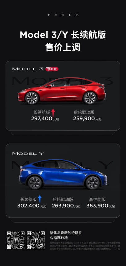 Model 3 長(cháng)續航煥新版售價(jià)調整為 29.74 萬(wàn)元,此前為 29.59 萬(wàn)元,上調 1500 元。