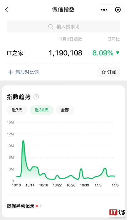 “微信指數”是微信官方提供的基于微信大數據分析的移動(dòng)端指數,可以為行業(yè)從業(yè)者提供一些網(wǎng)絡(luò )趨勢參考,用戶(hù)可以直接訪(fǎng)問(wèn)小程序,輸入各種詞匯,檢索最近 7 天、30 天或 90 天內的熱度變化趨勢。