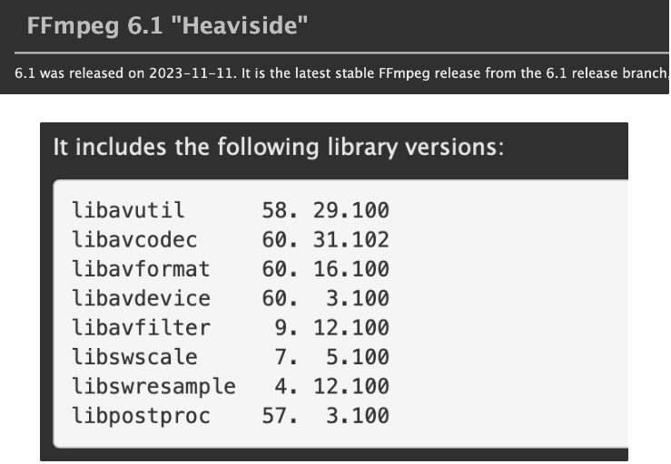 FFmpeg 6.1 主要變化包括: