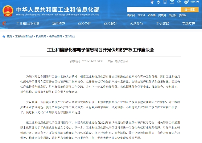 工信部:擬于年內成立光伏知識產(chǎn)權專(zhuān)委會(huì )