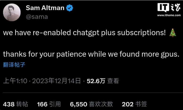 OpenAI 宣布重新開(kāi)放 ChatGPT Plus 訂閱,已找到更多 GPU
