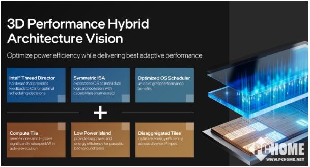 低功耗能效核的加入,加上計算單元里本來(lái)的性能核心(Redwood Cove)和能效核(Crestmont)的組合,就組成了低功耗能效核心(L-E)+能效核心(E)+性能核心(P)的全新3D高性能混合架構,一同帶來(lái)了英特爾迄今為止優(yōu)化程度最高的計算體驗。通過(guò)這種巧妙地組合,Meteor Lake也成了英特爾歷史上能效最高的客戶(hù)端平臺。