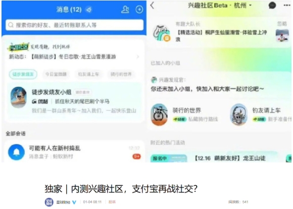 消息稱(chēng)支付寶再戰社交,內測“興趣社區”功能