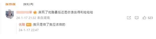 優(yōu)酷官微還在評論中表示:“我只是做了我應該做的”。