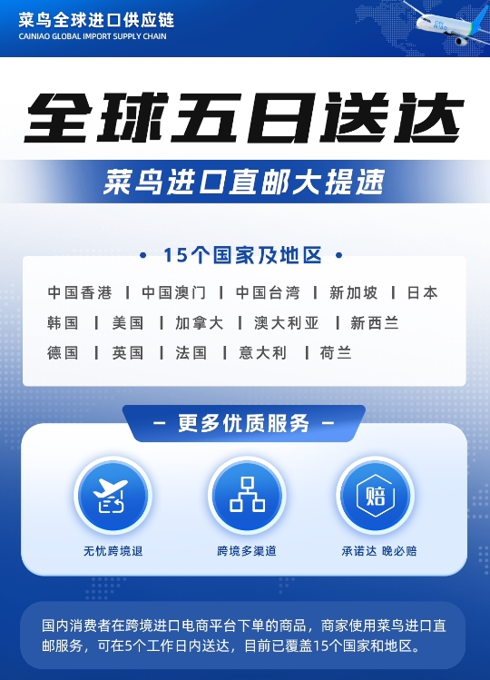 菜鳥(niǎo)進(jìn)口直郵提速,全球 15 個(gè)國家和地區商品 5 日送達內地