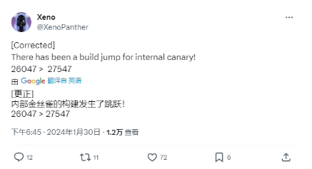 微軟正針對下一代 Windows 版本(傳言稱(chēng)之為“Win12”或“Win11 2024 更新”)進(jìn)行測試,目前 Canary 27547 版本已經(jīng)在內部完成編譯,相比當前版本跳了一代,這意味著(zhù)微軟已經(jīng)開(kāi)始內部測試 ge_release (Germanium_release) 版本。