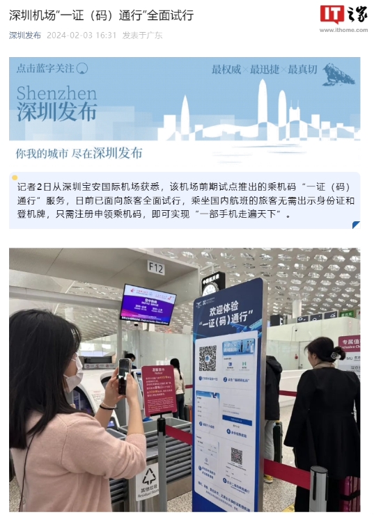 深圳機場(chǎng)“一證(碼)通行”全面試行,無(wú)需出示身份證和登機牌