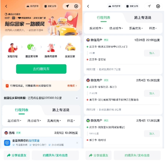 騰訊出行推出順風(fēng)車(chē)春節返鄉互助活動(dòng),一鍵發(fā)布拼車(chē)信息