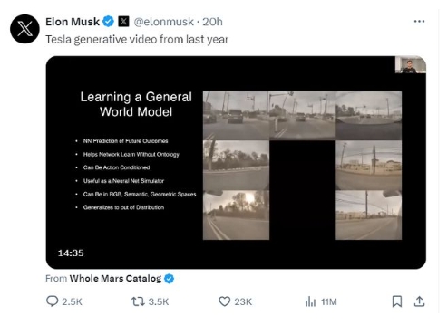 馬斯克隨即還展示了特斯拉去年首次推出的一些生成視頻。