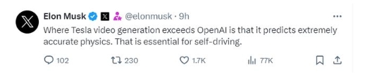 永不缺席的馬斯克:特斯拉早已掌握視頻生成技術(shù) 更勝過(guò)OpenAI