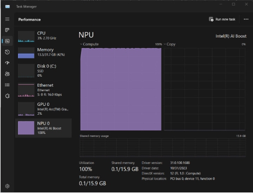 (目前英特爾NPU已經(jīng)支持了Windows11任務(wù)管理器的系統占用顯示)