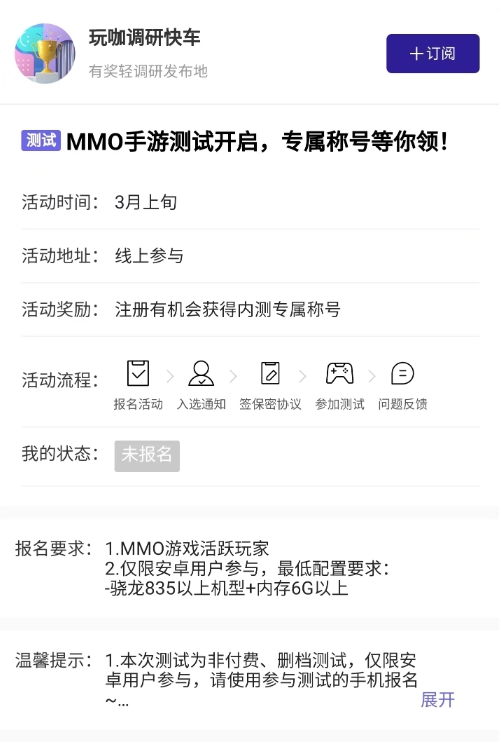 報名要求:MMO 游戲活躍玩家,僅限安卓用戶(hù)參與;