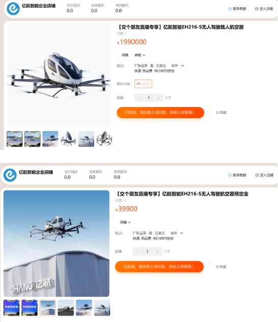 淘寶售出全球首批億航“空中的士”:售價(jià) 199 萬(wàn)元,12 人已交定金