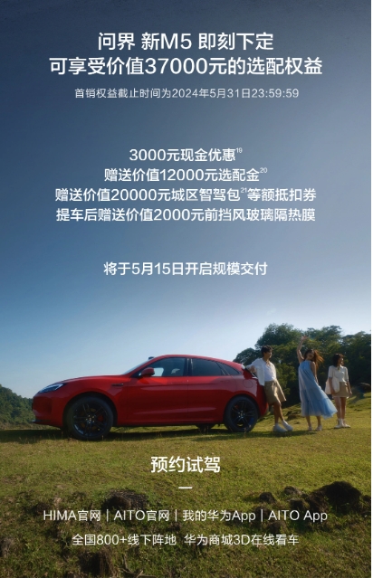 24.98 萬(wàn)元起,AITO 問(wèn)界新 M5 正式發(fā)布:全系標配華為高階智駕 09:00:12