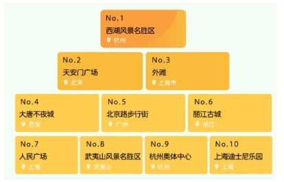 全國熱門(mén)景區 TOP10:開(kāi)封清明上河園、杭州靈隱寺、嘉興烏鎮、上海迪士尼、長(cháng)沙橘子洲景區、北京環(huán)球影城、北京天壇公園、開(kāi)封萬(wàn)歲山武俠城景區、北京動(dòng)物園、杭州西湖風(fēng)景名勝區。