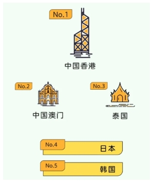 境外目的地消費熱度 TOP5:中國香港、中國澳門(mén)、泰國、日本、韓國。