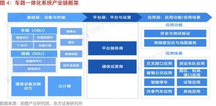 東方證券認為,車(chē)路協(xié)同產(chǎn)業(yè)已經(jīng)構建起成熟的生態(tài)體系,分別為基礎層、平臺層和應用層。