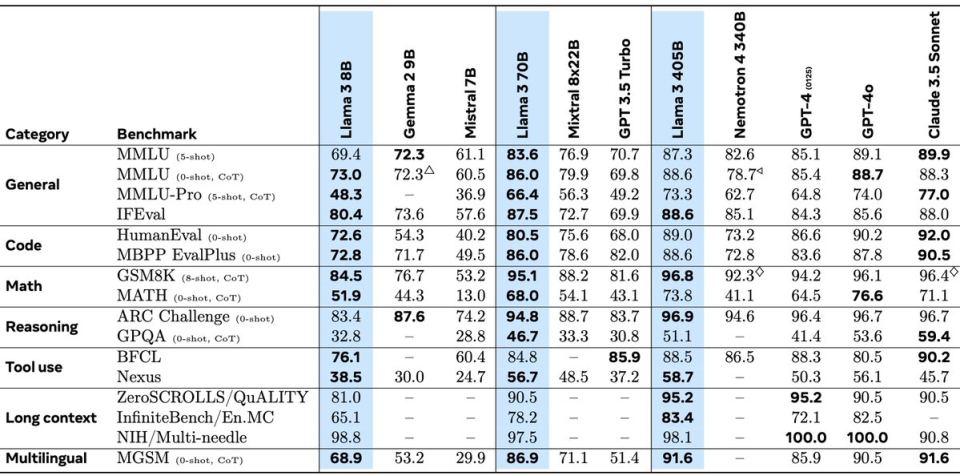 開(kāi)源社區的“里程碑”:Llama 3.1-405B在多項測試中超越GPT-4o