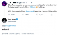 馬斯克一句話(huà),比特幣價(jià)格又一次大幅震蕩…… 馬斯克暗示特斯拉可能已賣(mài)出比特幣? 比特幣重挫近6000美元 當地時(shí)間16日,一自