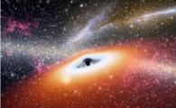 在一個(gè)年輕的恒星豐富的星系中心產(chǎn)生了一個(gè)最原始的超大質(zhì)量的黑洞(中心黑點(diǎn))的概念圖?! ≡诤棋挠钪婊▓@中,其中最重的黑洞也是從