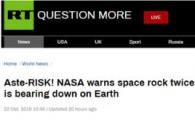 下個(gè)月,一顆直徑約為巴黎埃菲爾鐵塔高度兩倍的小行星,即將要與地球擦肩而過(guò)?!RT報道截圖 綜合英國《鏡報》及今日俄羅斯(RT)22日報