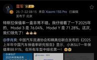 7月22日,小米副總裁李肖爽微博發(fā)文,援引中國汽車(chē)流通協(xié)會(huì )和精真估聯(lián)合發(fā)布的《2025上半年中國汽車(chē)保值率研究報告》數據,宣布小米SU7