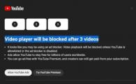 YouTube 正在進(jìn)行一項新的實(shí)驗,旨在限制廣告攔截器的使用,要求用戶(hù)在觀(guān)看三個(gè)視頻后關(guān)閉廣告攔截器或者購買(mǎi)高級訂閱服務(wù)。