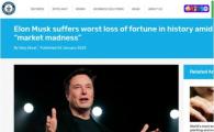 吉尼斯世界紀錄官方宣布,埃隆?馬斯克(南非)正式打破了歷史上最大的個(gè)人財富損失世界紀錄。圖片來(lái)自網(wǎng)絡(luò ) 侵刪 據福布斯估計,自 2