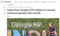 據路透社報道,谷歌周二再次被印度罰款 93 6 億印度盧比(約 8 24 億元人民幣),因為印度本月完成了另一項反壟斷調查,發(fā)現谷歌公司